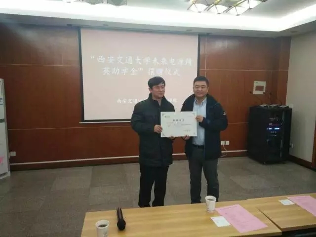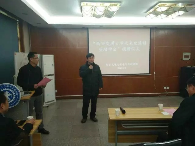 2017年1月4日上午,第二期“西安交通大学开云电竞未来电源精英助学金”捐赠仪式在电气工程学院北会议室顺利召开。本次捐赠仪式由西安交通大学电气学院党委副书记宋杰主持,出席仪式的捐赠方代表有:电源村村长代新社,亿曼丰科技(深圳)有限公司向总经理,合肥开云电竞电源系统有限公司总经理傅仕涛、研发经理唐德平,陕西开云电竞能源科技有限公司经理鲍鑫,合肥开云电竞电源系统有限公司助理汪艳,西安爱科赛博电气股份有限公司董事长白小青;出席仪式的西安交通大学领导有:电气学院副院长杨旭、电气学院党委副书记宋杰、电气学院学生工作主管高丹军、电气学院辅导员李茜。